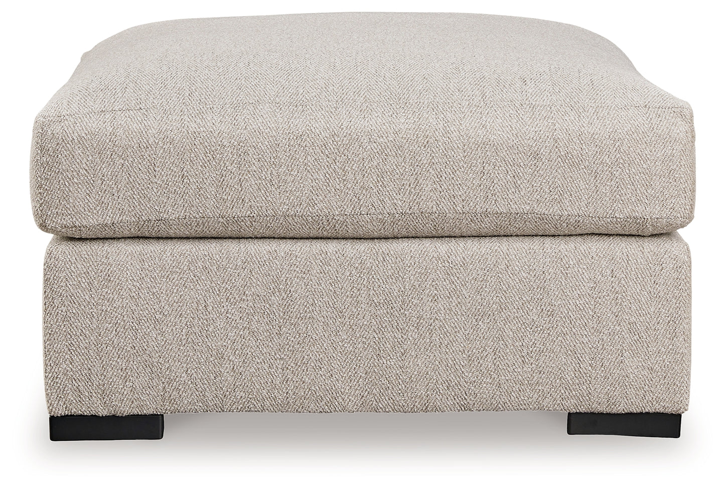 Reminiscent of a fine, subtly patterned herringbone jacket, this casually elegant ottoman offers contemporary style in spades. Its oversized silhouette provides plenty of leg room, while a soft feather-blend top cushion maximizes relaxation. Why skimp on comfort and style? With this ottoman, you have plenty of room to rest your feet and unwind.