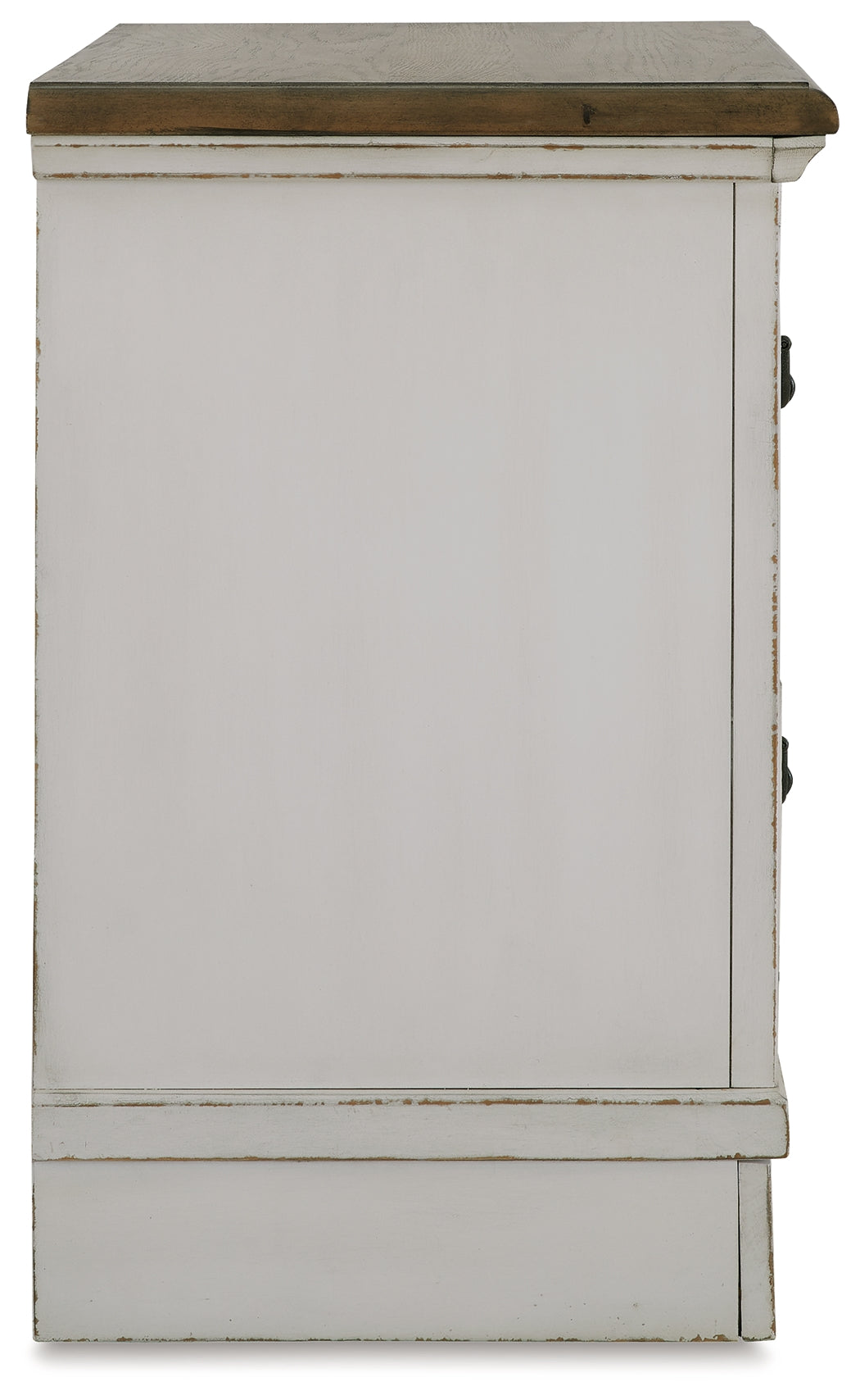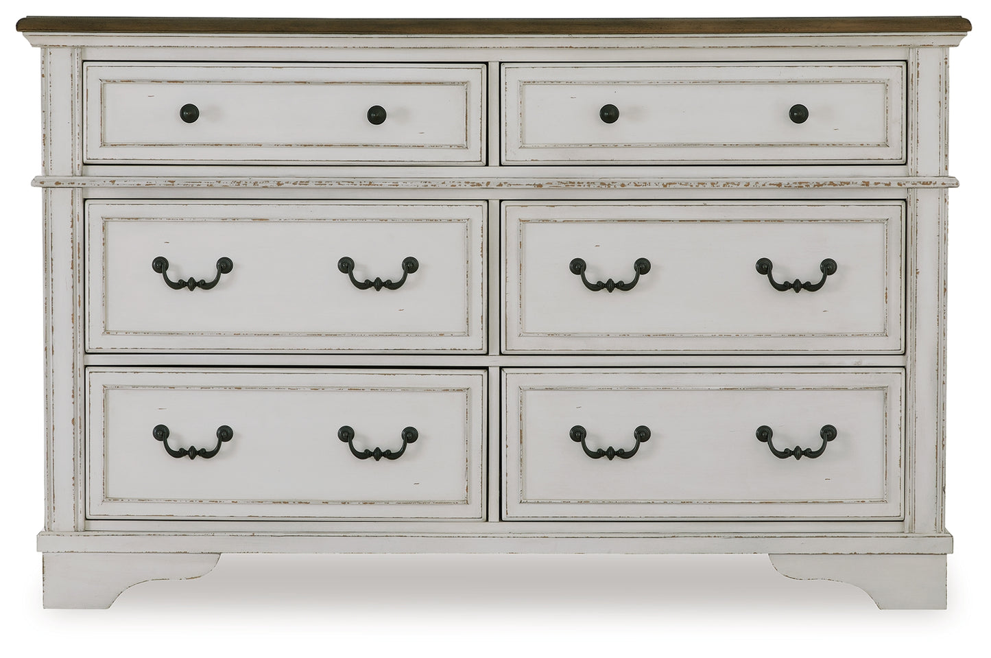 Traditional design. Casual appeal. You can have it all with this chest of drawers. A relaxed two-tone aesthetic merges with ornate profiled drawer fronts and pilasters to give the distinctive piece an allure all its own. Expansive drawers with quality dovetail construction and dark bronze-tone hardware reflect attention to detail from the inside out.