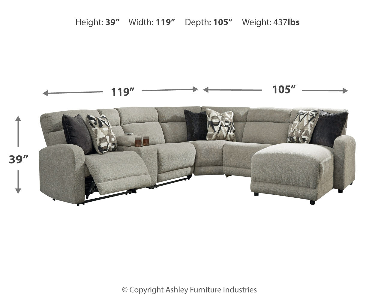 | 6-Piece Power Reclining Sectional with Chaise | 119" | 105" | 39" |