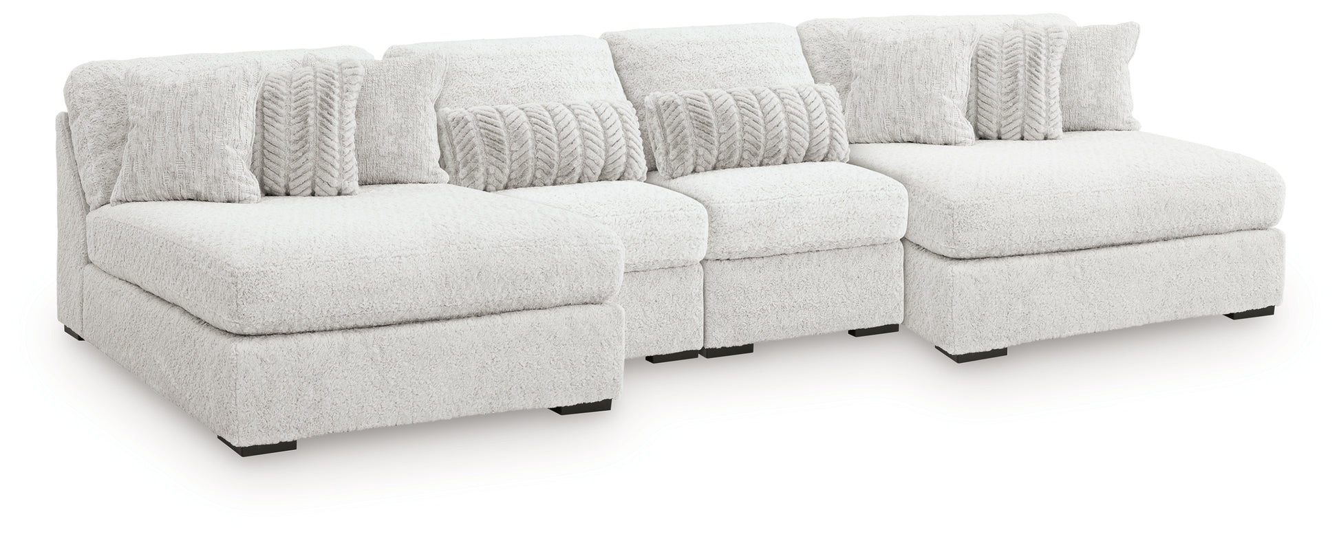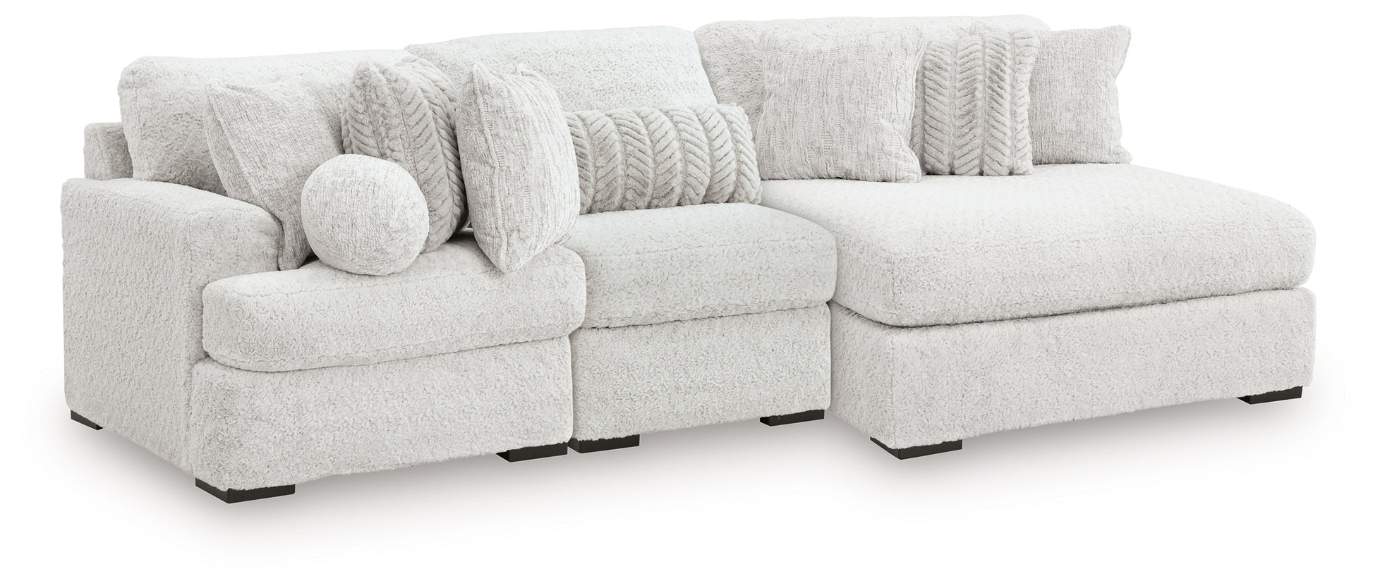 - Includes 3 modular pieces: left-arm facing corner chair, armless chair and oversized armless chaise