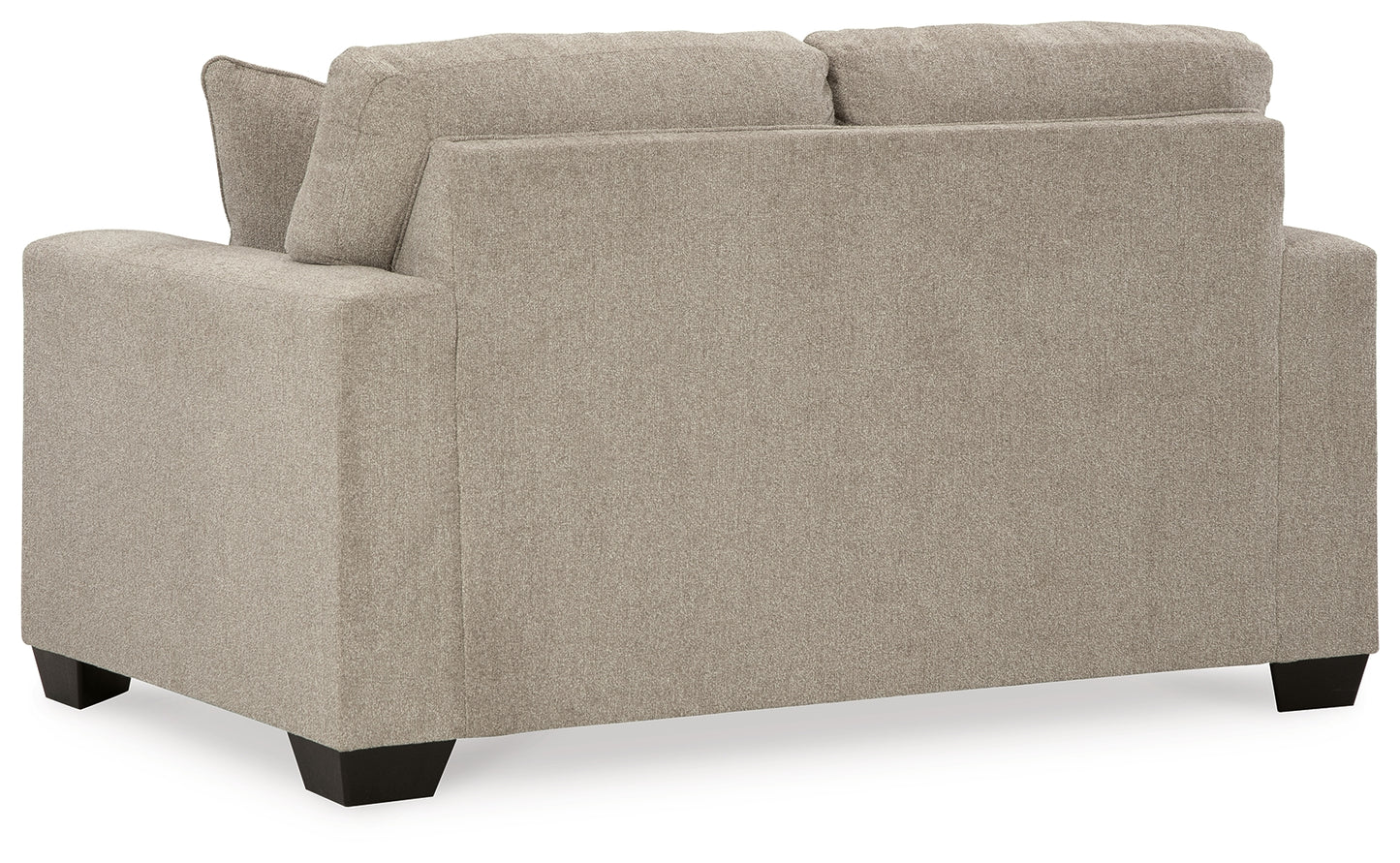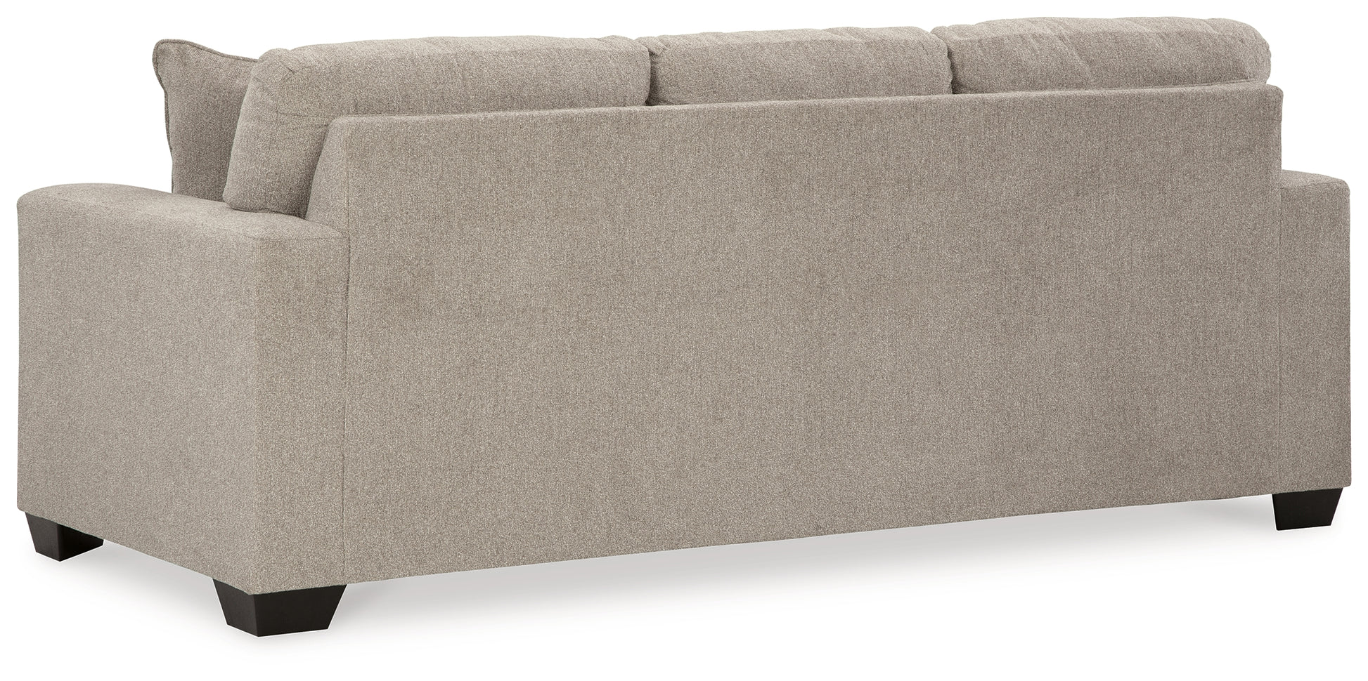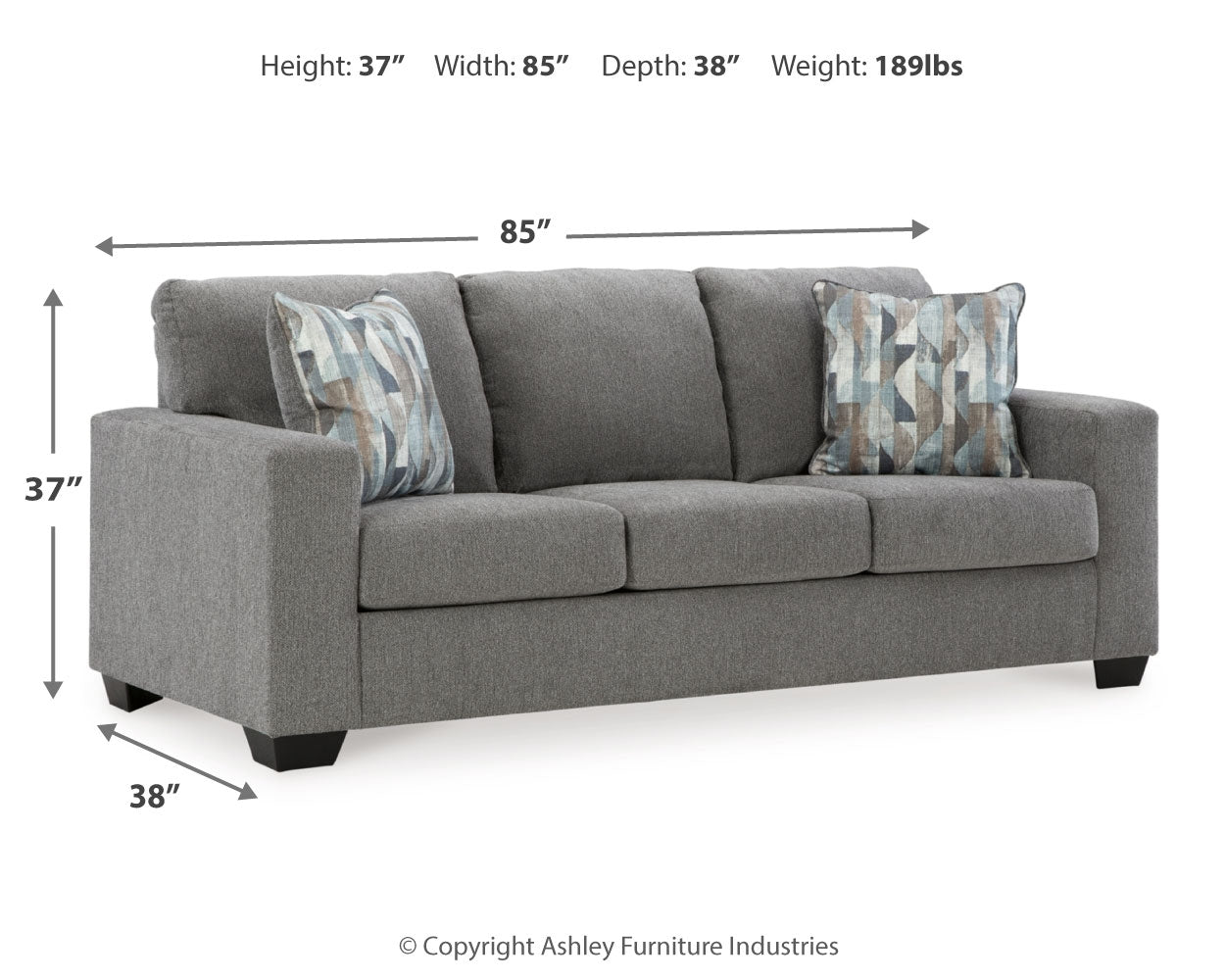 You’re in for a neat treat with this sofa. Its comfy seats are covered in soft, textural upholstery, and the wide track arms are eager to support your quest for total relaxation. Distressed abstract toss pillows bring a fresh breath of contemporary style while accentuating the sofa's color.