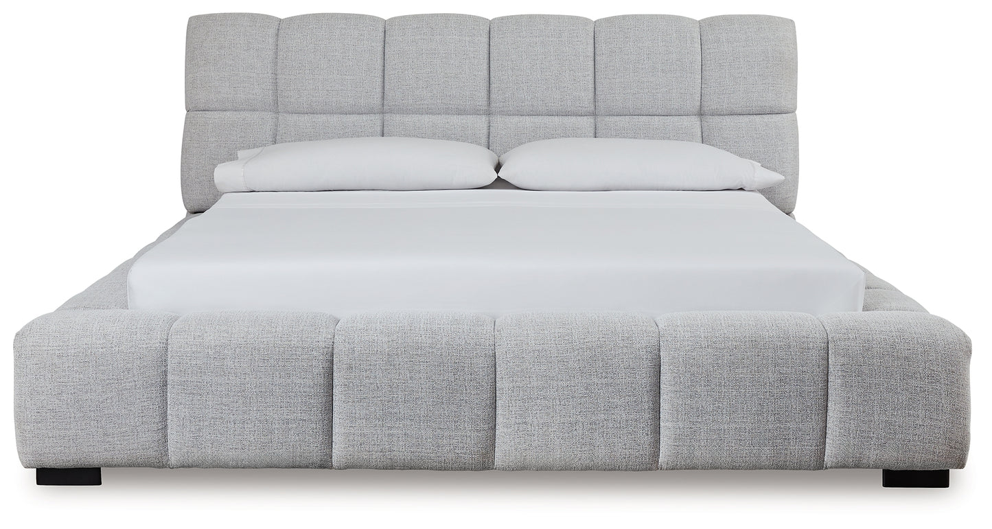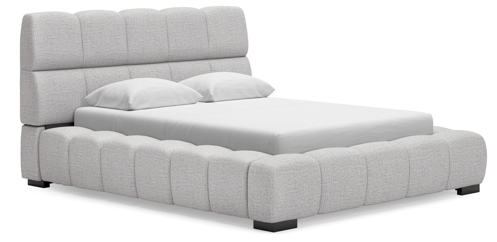 A divine merger of casual and contemporary design, this California king upholstered bed is the upgrade you've been dreaming of. Plush, deep pillowed tufting creates an impressive silhouette that's just as comfortable as it is stylish. And the textured light gray Next-Gen Nuvella™ performance fabric is soft and easy to clean. Now there's a bed with staying power.