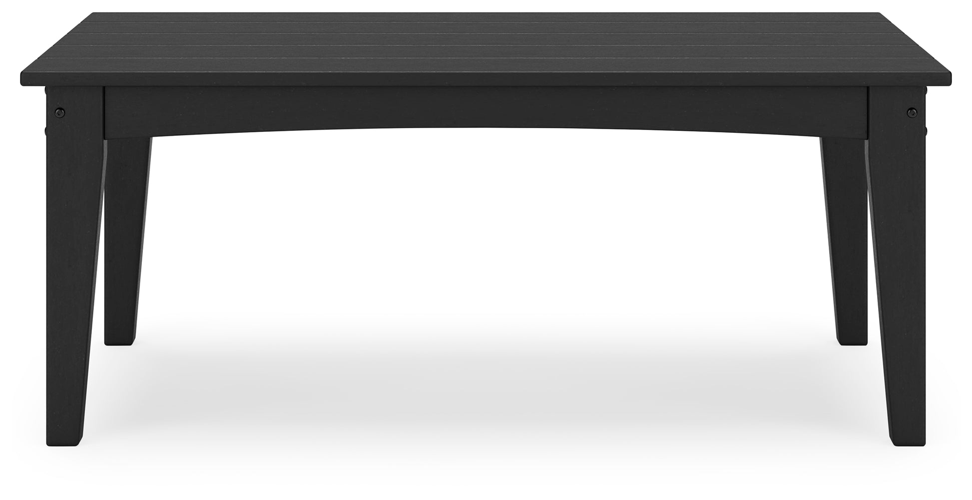 Drift into outdoor entertainment bliss with this coffee table. Dressed in a smart black for a sophisticated feel, it weathers sunny summer days and cozy winter nights with durable MEGA-TUFF® HDPE material. When it comes to form and function, the table's rain-shedding slatted design simply goes with the flow. Use it to hold outdoor decor, drinks or snacks.