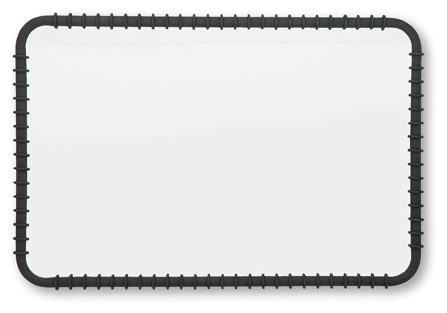 This accent mirror's sleek black finish and ribbed design add a touch of contemporary chic to any room. Its versatile hanging options allow you to display it vertically or horizontally, making it easy to complement your existing decor. The clean lines and simple shape create a modern and minimalist feel, while the substantial frame adds a touch of boldness.