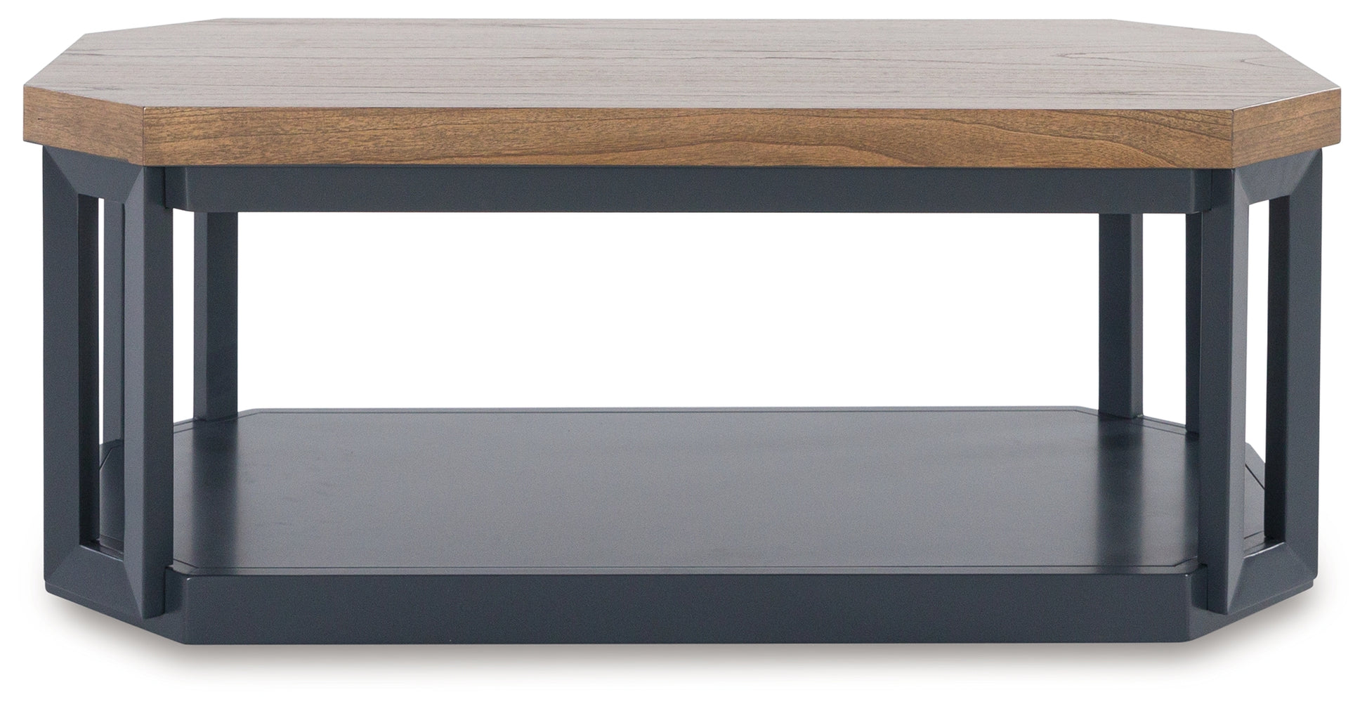 This accent table set combines casual contemporary design with modern appeal. With thick-bodied wood-tone tabletops and on-trend slate blue frames and shelves, these tables are a smart choice on so many levels. And casters on the coffee table's legs make it easily mobile for quick room transformations. This three-in-one pack is more than just nice furniture anchoring your sofa.