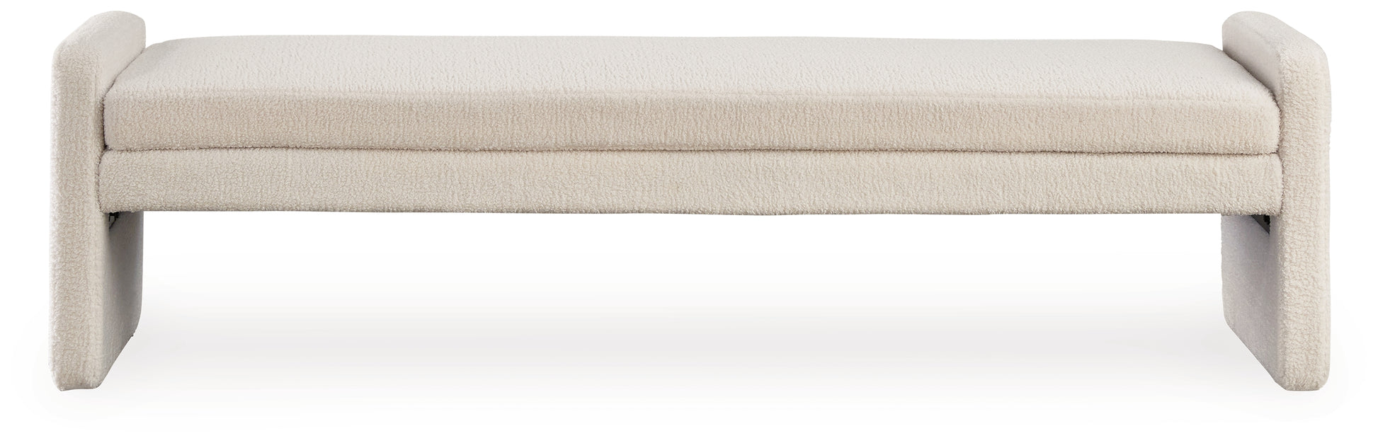 This accent bench helps you craft a cozy space without sacrificing the high-style vibe you love. Clean lines and a simple silhouette give it a contemporary, tailored feel. Inviting faux shearling fabric and rounded edges soften the look. Whether it's at the end of your bed or welcoming guests in the entryway, this piece is sure to make a statement.