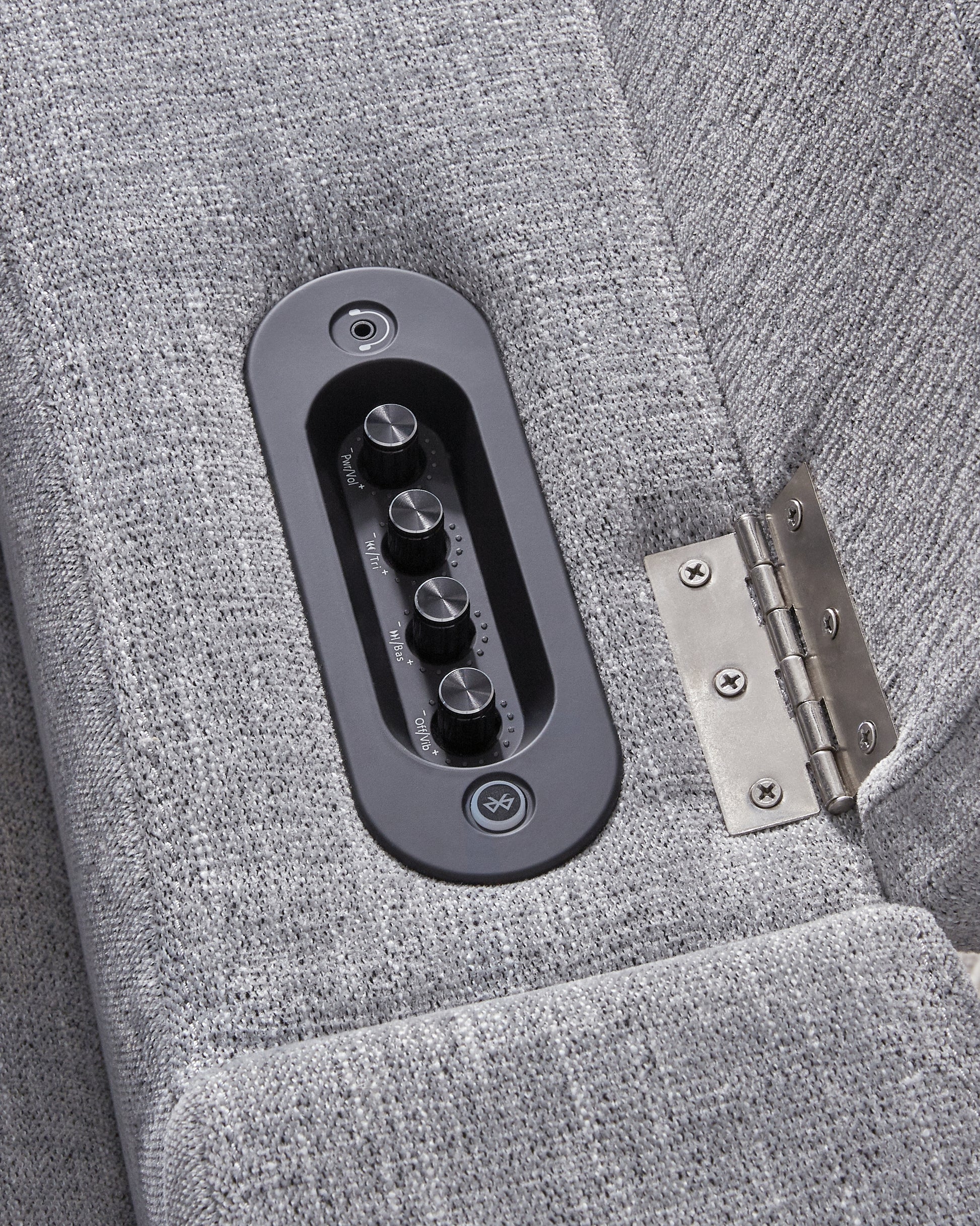 - Armrests with flip-top storage; hidden Thunder control panel with adjustable volume, treble, bass and vibration