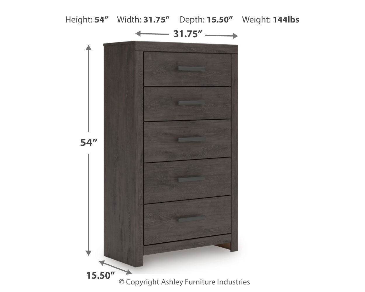 Designed with everyday style in mind, this queen panel bed is a simply chic approach to modern living. A dark charcoal finish blends black and brown undertones, creating a versatile look that effortlessly pairs with your existing pieces. And for an extra dash of trend-right style, the headboard is dressed in a playful chevron pattern.