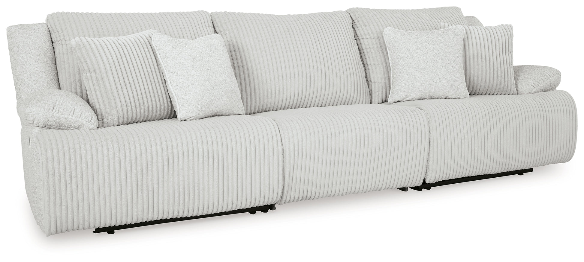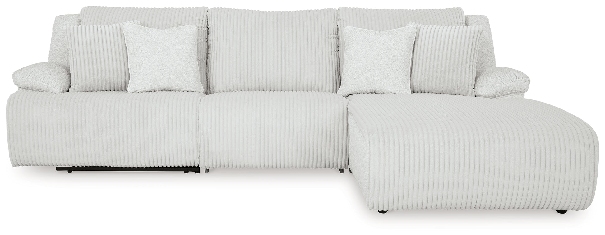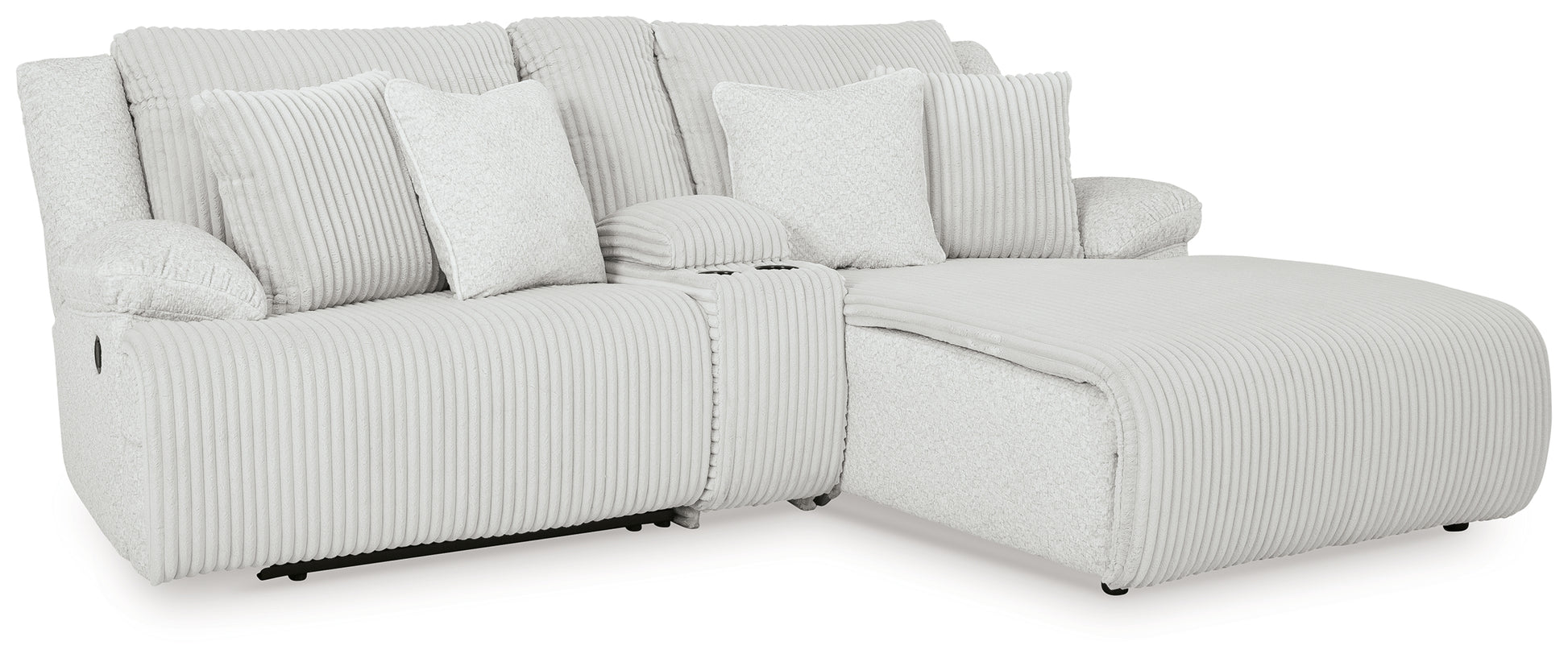 - Includes 3 pieces: left-arm facing recliner, armless recliner and right-arm facing press back chaise