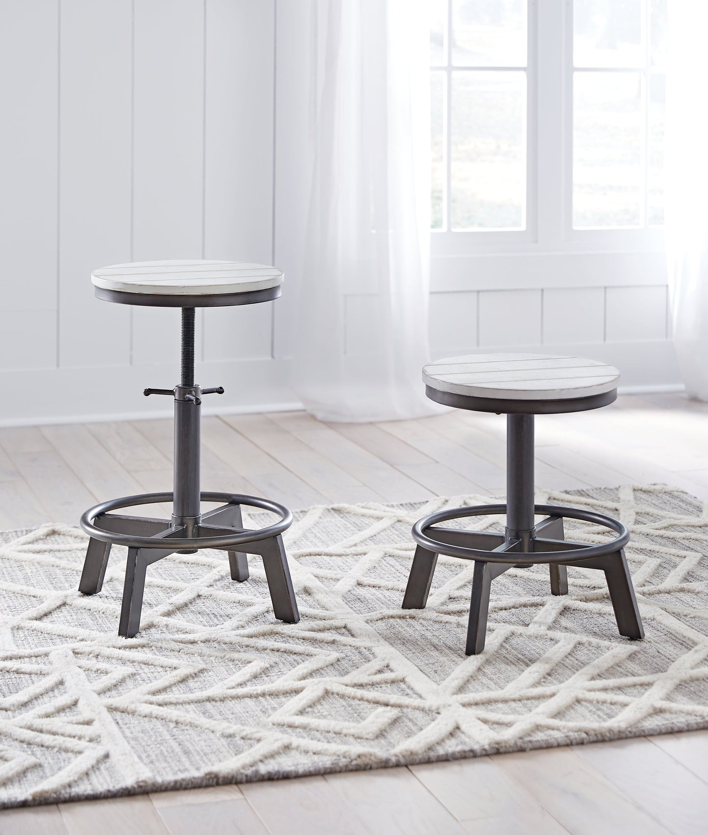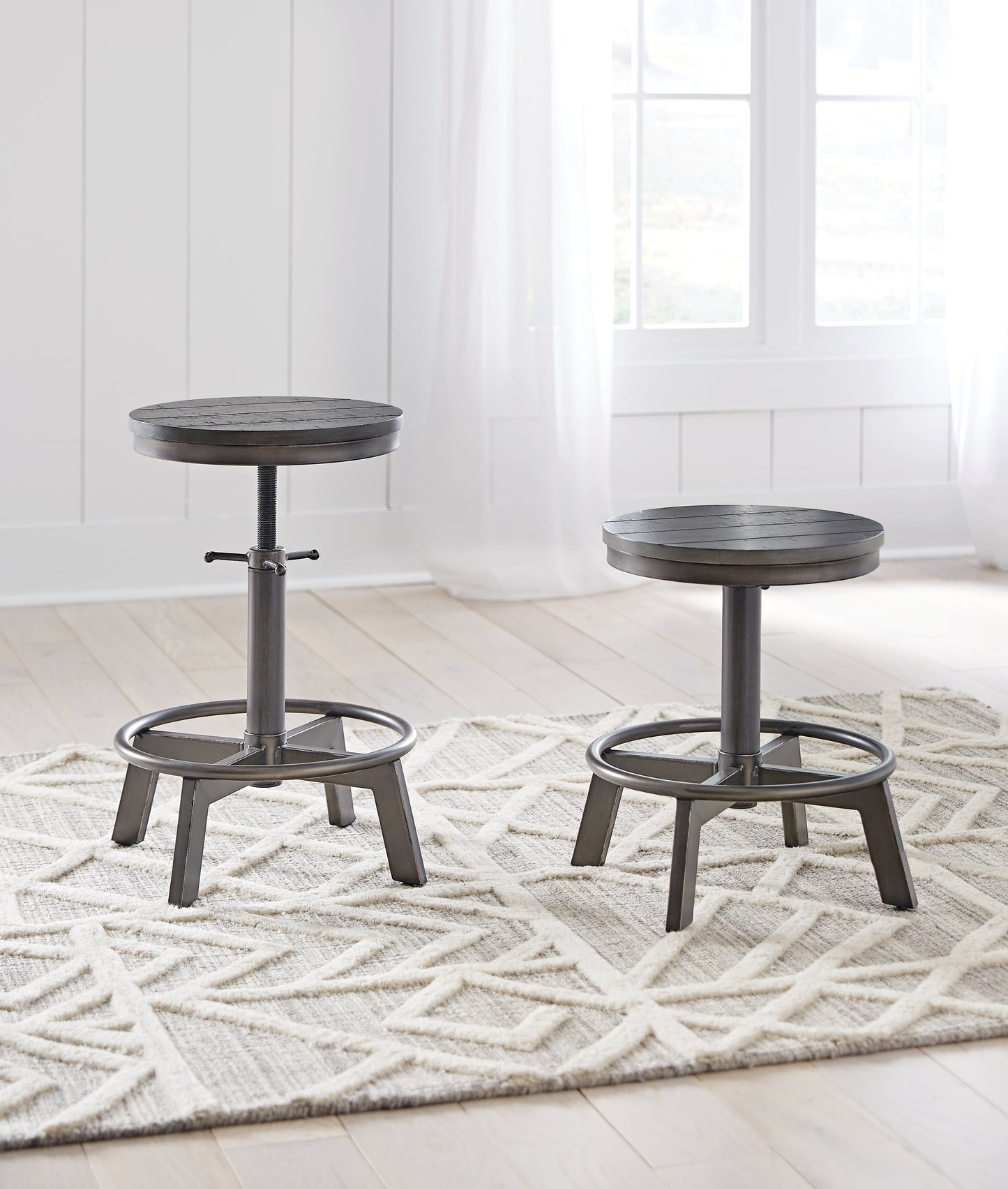 Make your home the hub for cool vibes with this stool. Its two-tone finish scheme of weathered gray and aged gunmetal is full of urban industrial swagger. The stool's adjustable height is accommodating for you and your guests. Add it behind your sofa with a long counter table for a dapper eating or working space.