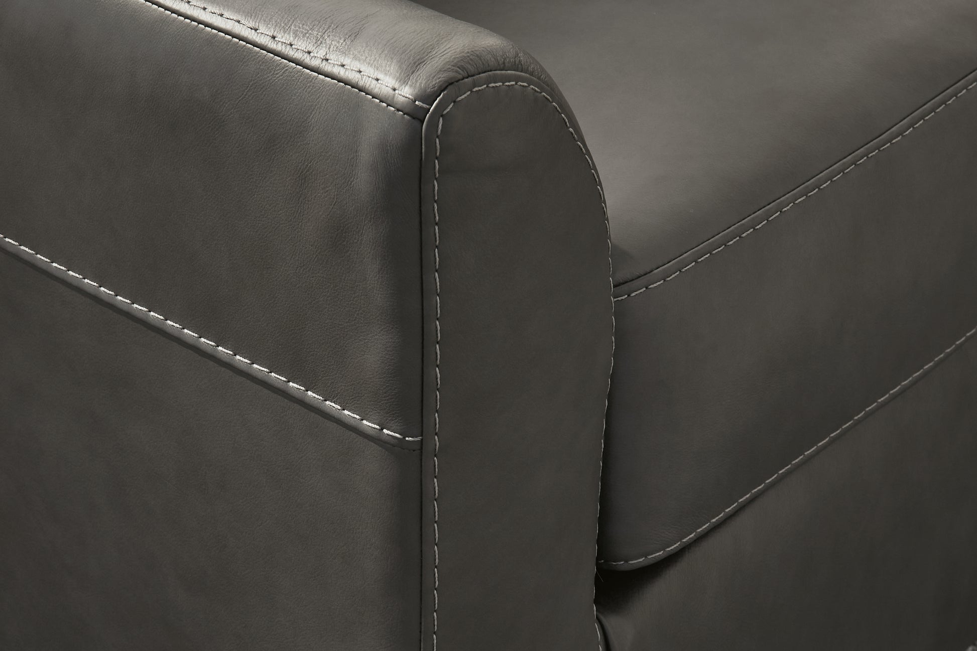 - 100% top grain leather covers inside areas such as the back, seat and arm cushions; skillfully matched faux leather covers the remaining areas