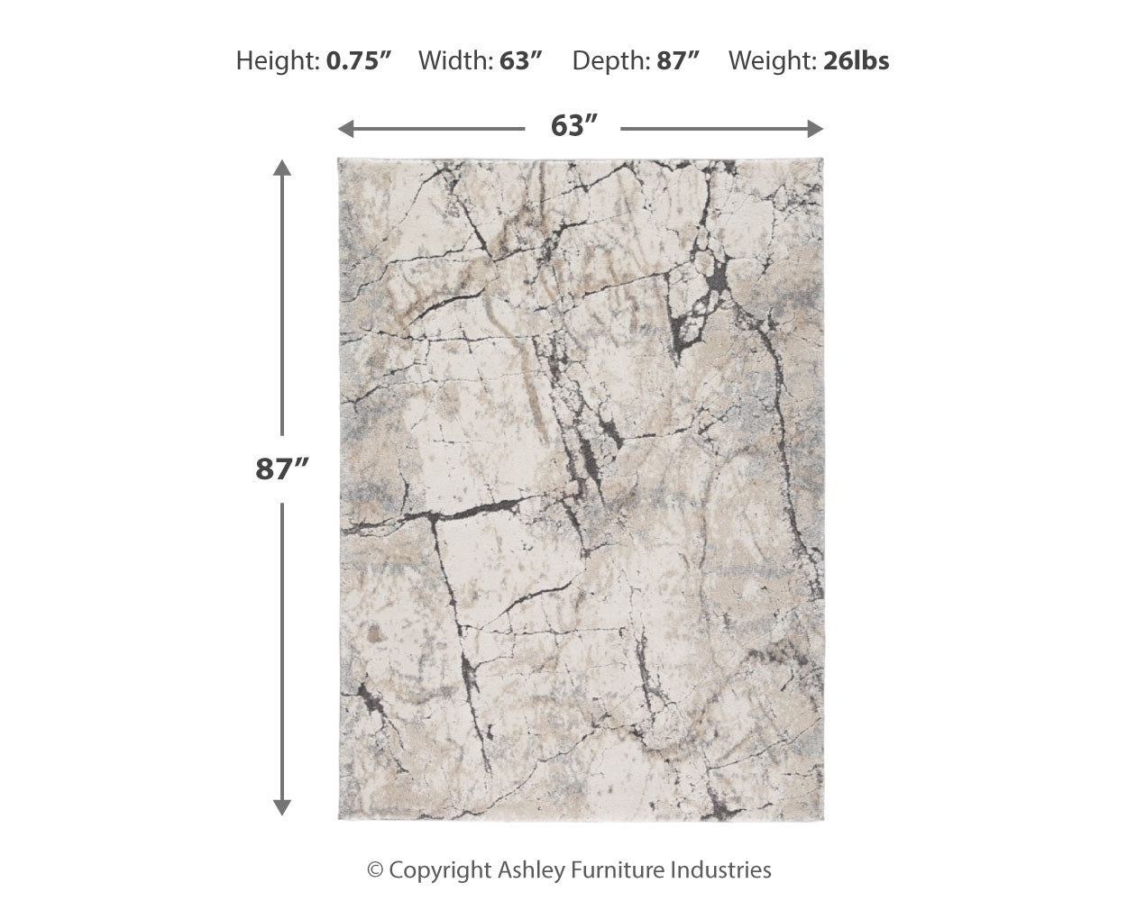 | 5'3" x 7'3" Rug | 63" | 87" | 1" |